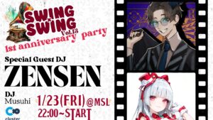 ホーム1周年記念PARTY SWING×SWING 2026年1月7日 SHARE ポスト シェア はてブ LINE イベント詳細日付: 2026年1月23日 9:50 PM – 24日 12:00 AM会場: Cluster